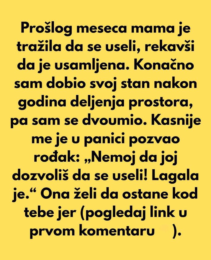 Pre nekoliko meseci, moja majka me je iznenada upitala može li se preseliti kod mene. Nije bilo nijednog posebnog razloga za to, osim što je izrazila osjećaj usamljenosti i želju za bližim kontaktom. Na prvi pogled, ovo pitanje je izgledalo kao nevin zahtev. Ipak, odgovor na njega nije bio lak. Godinama sam živjela u malim stanovima, dijeleći prostor s cimerima, i konačno sam stekla svoj privatni kutak — mesto gdje mogu biti sama, raditi i stvoriti vlastitu rutinu bez podjela i kompromisa. Ovaj privatni prostor je postao moje utočište, mesto gde sam mogla razmišljati, stvarati i razvijati se kao osoba.